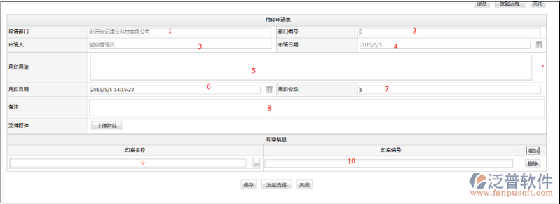 l 1:申請部門:由系統(tǒng)自動生成,顯示當前登陸人的部門。
