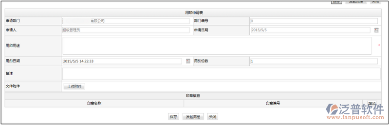 用章申請是系統(tǒng)使用人員用來填寫用章申請的表單,作為用章申請的記錄單。