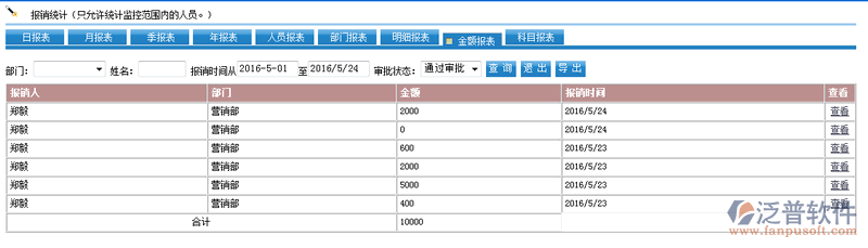 5、查看每個人員費用報銷情況