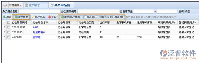 所在位置:[辦公用品管理] à [辦公用品信息管理]