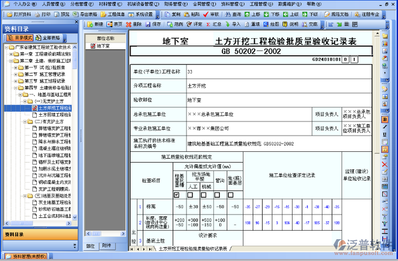 所有表格通用信息自動填寫;檢驗批自動評定,自動生成100%合格的評定數(shù)據(jù),不合格數(shù)據(jù)自動標記;自動匯總檢驗評表格,自動生成評定意見,自動匯總分部及子分部