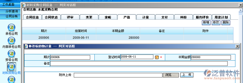 單擊【新增】,錄入產(chǎn)值數(shù)據(jù),單擊【保存】結(jié)束。如: