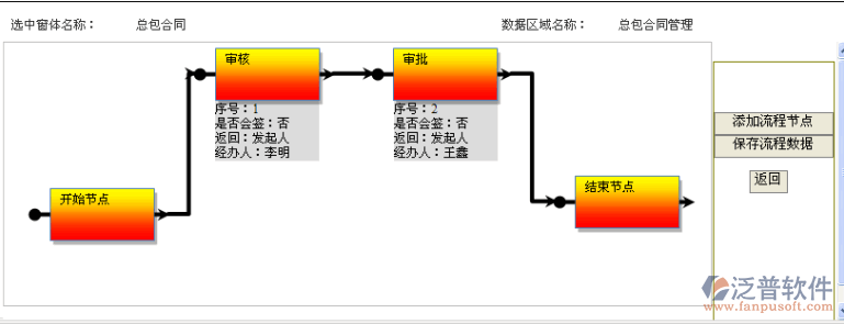 可以根據(jù)實際情況設置每一個節(jié)點不同意時應返回哪一節(jié)點。其中物資供應商管理、機械供應商管理、勞務分包管理、專業(yè)分包方管理的工作流應定義為轉(zhuǎn)交下一步,因為對勞務隊和供應商的評審,如果不同意則該勞務隊或供應商變?yōu)椴缓细瘛趧贞犜u審流程建議如下: