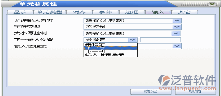 【輸入】有輸入法模式、大小寫控制、字符類型、允許輸入內(nèi)容、下一錄入位置。如下圖: