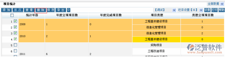 保存了數(shù)據(jù)之后在表單中可以看到所添加的項目統(tǒng)計信息,點擊【修改】按扭以對項目統(tǒng)計信息進(jìn)行修改。