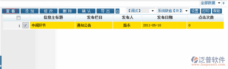 選擇列表中當(dāng)前發(fā)布的一項(xiàng)信息,點(diǎn)擊【查看】按鈕查看信息內(nèi)容。