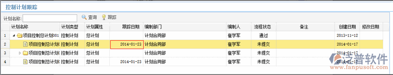 在頂部菜單中選擇【計劃管理】->【控制計劃】->【跟蹤】,在用戶桌面顯示【控制計劃跟蹤】頁面。
