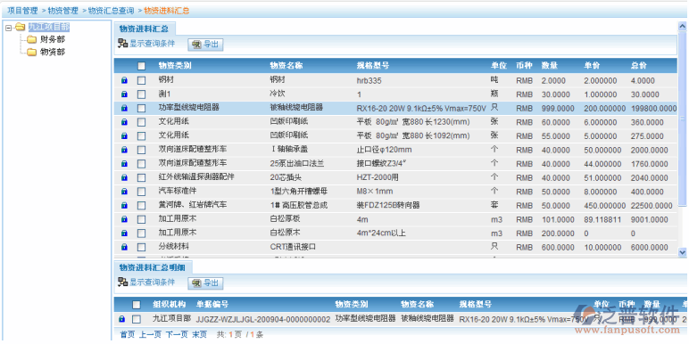 物資進(jìn)料匯總