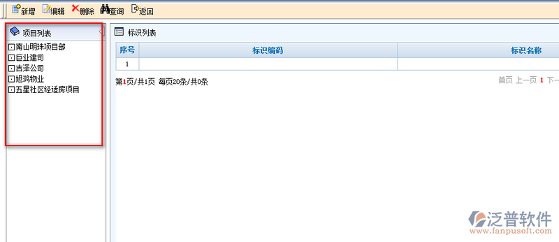 1、登錄項目管理系統(tǒng),點擊功能菜單,基礎(chǔ)設(shè)置->機械進場標識設(shè)置,系統(tǒng)轉(zhuǎn)入機械進場標識設(shè)置表,系統(tǒng)瀏覽窗口如下: