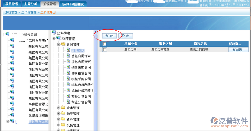 例如:將集團中的總包合同工作流復制到于家堡總包合同業(yè)務中。