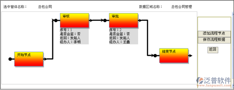 描述:在這個(gè)流程中,業(yè)務(wù)人員提交流程,李明就會(huì)在待辦工作中,看見該條記錄,進(jìn)行審批,如果審批不同意,該條記錄返回至發(fā)起人,變?yōu)槌跏紶顟B(tài),業(yè)務(wù)人員可以進(jìn)行修改,如果審批同意,則王鑫就會(huì)在待辦工作中看見該條記錄,對(duì)該條記錄進(jìn)行審批,如果審批不同意,返回至發(fā)起人,如果同意,則該合同審批通過,在該系統(tǒng)中認(rèn)為是有效的。也就是說,第一審批人如果不同意,則第二審批人是看不見該條記錄的。