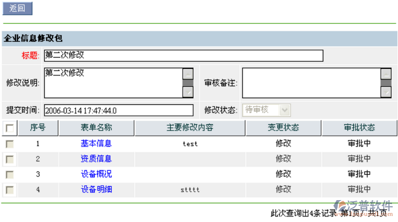 上圖中顯示出該企業(yè)自上一次審批通過(guò)之后所更改的記錄。
