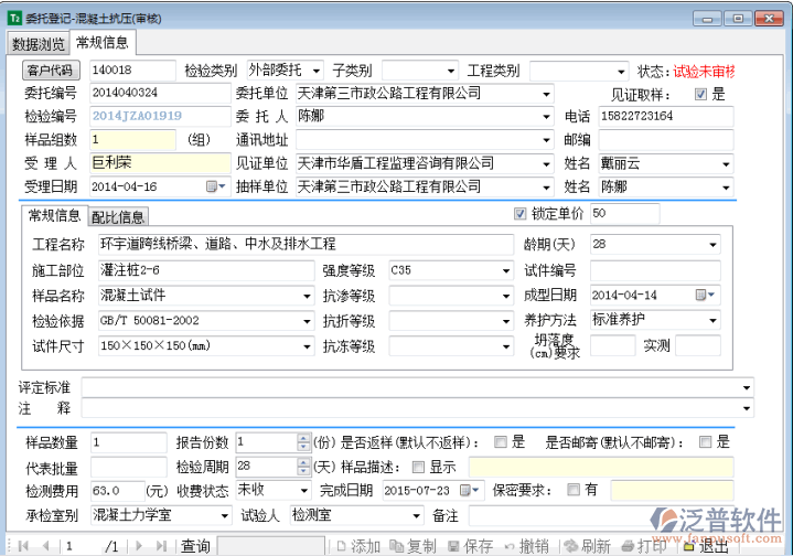 在界面左側(cè)選中要審核的報告分類項,從右側(cè)選擇要審核的具體報告,點擊鼠標(biāo)右鍵,在彈出的快捷菜單中選擇“委托信息審核”、“檢測信息審核”(或底部對應(yīng)的功能按鈕),即可打開委托錄入的信息和檢測數(shù)據(jù)錄入的信息進行審核查看(如圖3)。
