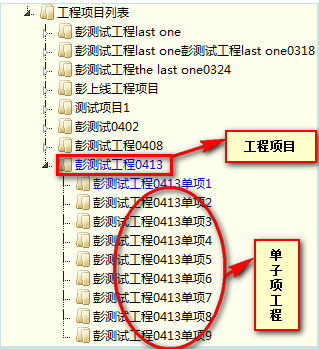注:只有工程項目登記中審批通過的項目才顯示在工程項目結(jié)構(gòu)樹中。