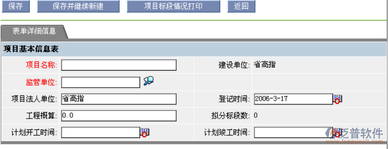 Ø 點(diǎn)擊“新建”按鈕轉(zhuǎn)到項(xiàng)目基本信息新建頁面,界面如下: