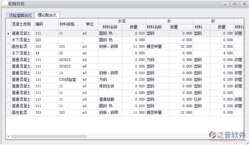 【新增混凝土】:點擊新增混凝土,彈出砼配合比頁面,雙擊選擇混凝土。