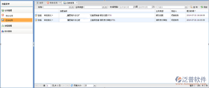 通過點擊【功能菜單—任務管理—已辦任務】進入業(yè)務人員的已辦任務界面,見下圖: