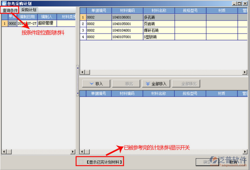 三種方法,一種是從材料字典中選取,一種是從采購(gòu)計(jì)劃中選擇,另一種是從是從合同中選擇。