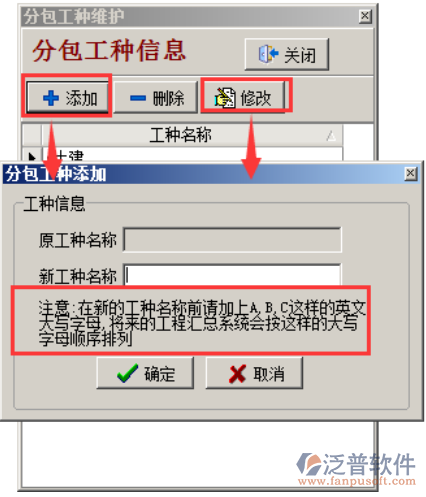 這里請至少添加一個工種,在【分包內(nèi)容維護】中會使用到。