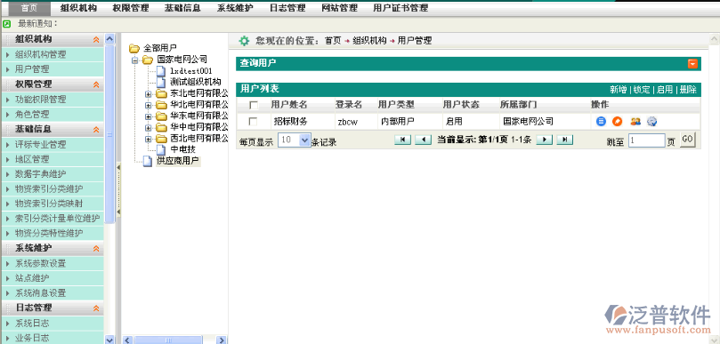 ,如圖1,進入查詢頁面,在查詢條件框中輸入查詢關(guān)鍵字,如圖2,點擊查詢,系統(tǒng)列出需要查詢的用戶信息并在列表中顯示,如圖3。點擊重置按鈕,可返回默認的查詢條件 。