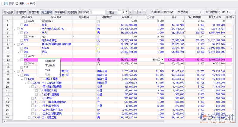 粘貼時(shí)項(xiàng)目編碼自動(dòng)生成,項(xiàng)目名稱全部粘貼過來,其他字段需要手工進(jìn)行錄入。