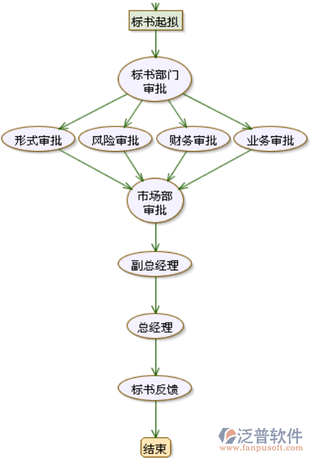 投標審批具體操作與招標審批類似 投標審批流程如下圖所示: