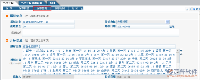 項(xiàng)目二次開標(biāo)信息進(jìn)行管理