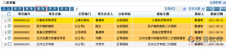 明細(xì)項(xiàng)目二次開標(biāo)的基本情況,能方便快捷地添加,修改,刪除,查詢相關(guān)項(xiàng)目二次招標(biāo)信息,對(duì)項(xiàng)目二次開標(biāo)信息進(jìn)行管理以及配置。