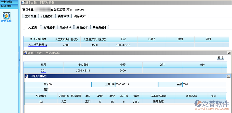 人工費(fèi)實(shí)際成本查詢: