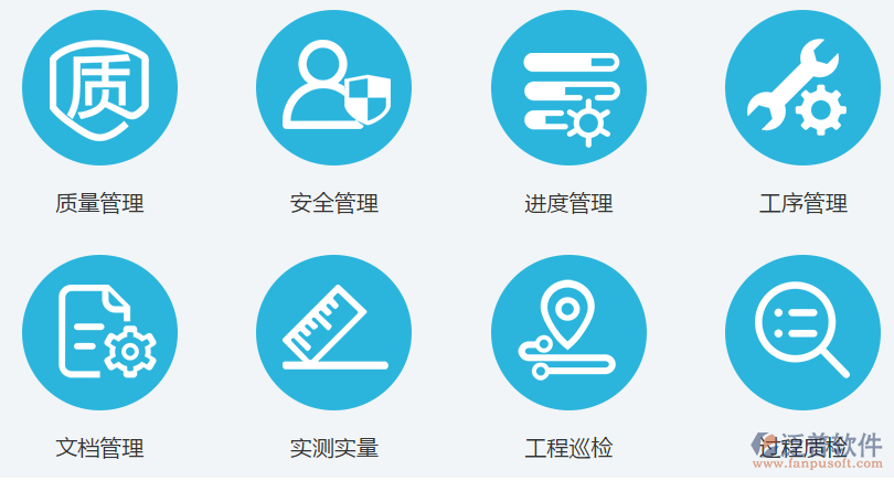項(xiàng)目管理、合同管理、工程收付款管理、進(jìn)度管理、質(zhì)量管理、分包管理、施工現(xiàn)場(chǎng)管理、成本管理、預(yù)算、投標(biāo)、計(jì)量支付、物資管理、設(shè)備管理、租賃管理、倉(cāng)庫(kù)管理、財(cái)務(wù)管理等