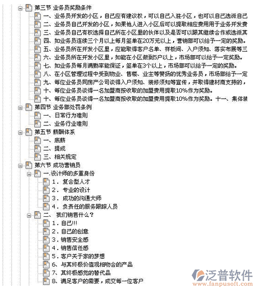 裝飾企業(yè)全程營銷管理解決系統(tǒng)把健全管理制度、理順管理關系,作為規(guī)范項目管理行為的“內(nèi)部法典”。項目管理是通過管人來管事的,既是人治又是法制,但人治是建立在法制的基礎上的,是通過管理制度來管人的。管理制度的起草建立必須體現(xiàn)出預見性、連續(xù)性、科學合理性和可操作性。因此,泛普軟件-裝飾企業(yè)全程營銷管理解決系統(tǒng)建立管理制度體系,必須參照國內(nèi)同行業(yè)先進企業(yè)、同行業(yè)兄弟單位先進的先進管理經(jīng)驗來進行。并結(jié)合公司管理要求和結(jié)合項目工程特點、項目所處地域特點、業(yè)主監(jiān)理管理特點和項目人員構(gòu)成特點,進行綜合分析,花大力氣抓好企業(yè)內(nèi)部規(guī)章制度的建設。要反復論證各項管理制度之間連貫性,避免執(zhí)行起來相互矛盾,既要理順內(nèi)部管理制度的關系,又要通過制度理順整個項目的管理關系。各項制度在執(zhí)行的過程中,隨著項目內(nèi)外情況的變化,不可避免會出現(xiàn)制度缺陷,項目第一管理者要及時根據(jù)變化了的情況及時修訂完善,使之不斷適應管理的需要。項目管理千頭萬緒,哪一個環(huán)節(jié)處理不好就可能影響到整個管理鏈條的中斷,所以,從項目組建之日起,就要通過制度千方百計理順內(nèi)外關系。