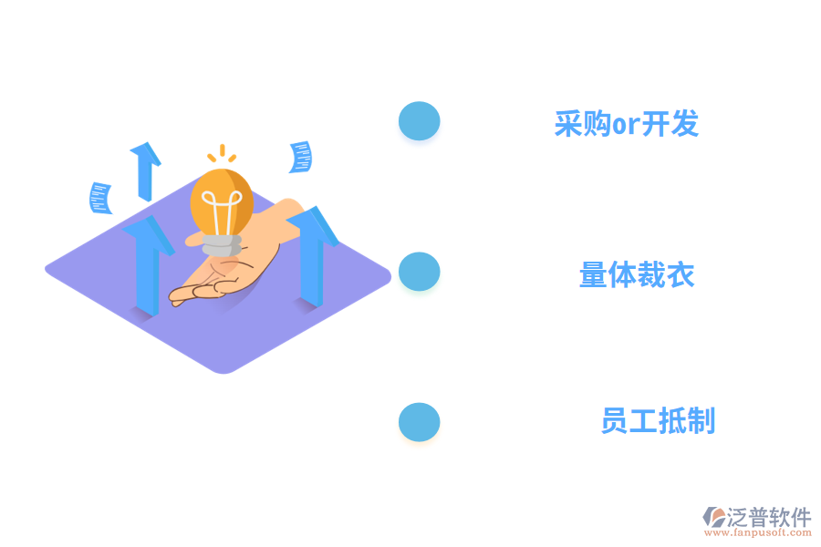最終,公司在敲定一款軟件后,需要在全公司實行推動,若公司之前沒有完善的管理體系,還需要重新自上而下的部署推廣,同時也可能伴隨著員工的抵觸,或者是新老業(yè)務(wù)流程沖突的問題。然而導(dǎo)致了前期項目實施周期的加長、成本的提高,還導(dǎo)致在實際應(yīng)用過程中復(fù)雜度提高、出錯率上升,反而給員工造成了諸多不便,影響了最終的轉(zhuǎn)型效果。