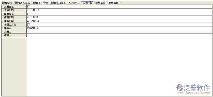 ?、?VIP資料2中可以查看這張VIP卡建檔日期,啟用日期和停用日期以及制卡人、啟用人、停用人,界面如圖9所示: