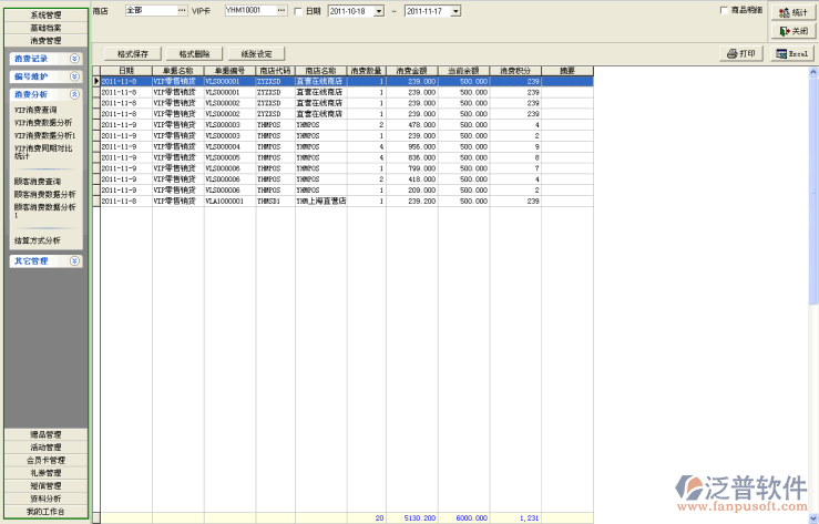 在泛普會員管理系統(tǒng)中,消費數(shù)據(jù)分析主要分為VIP消費查詢、VIP消費數(shù)據(jù)分析、VIP消費數(shù)據(jù)分析1、VIP消費同期對比統(tǒng)計、顧客消費查詢、顧客消費數(shù)據(jù)分析、結(jié)算方式分析??梢詫ξ覀兊臅T銷售數(shù)據(jù)經(jīng)驗一個明細(xì)化管理。