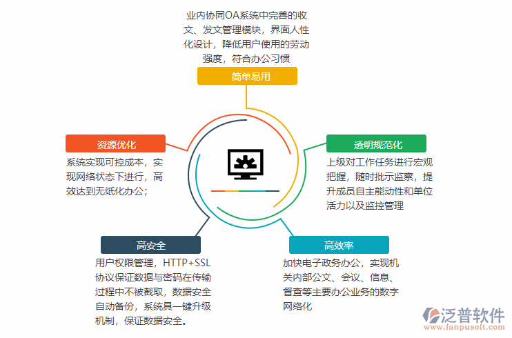 專注協(xié)同管理軟件領(lǐng)域15年,OA軟件擁有自主知識(shí)產(chǎn)權(quán)的協(xié)同管理軟件系列產(chǎn)品。在企業(yè)級(jí)移動(dòng)互聯(lián)大潮下,oa軟件發(fā)布了以“移動(dòng)化、社交化、平臺(tái)化、云端化”四化為核心的全新一代產(chǎn)品系列,包括面向大中型企業(yè)的平臺(tái)型產(chǎn)品、面向中小型企業(yè)的應(yīng)用型產(chǎn)品、面向小微型企業(yè)的云辦公產(chǎn)品,以及幫助企業(yè)對(duì)接移動(dòng)互聯(lián)的移動(dòng)辦公平臺(tái)、移動(dòng)集成平臺(tái)等。oa軟件產(chǎn)品的特色是突出的"協(xié)同管理"特性,即實(shí)現(xiàn)"信息協(xié)同",了解到一個(gè)信息點(diǎn)就可以立即提取出與其相關(guān)的其他信息;"業(yè)務(wù)協(xié)同",各部門(mén)、各環(huán)節(jié)的業(yè)務(wù)可以在統(tǒng)一管理和協(xié)調(diào)下進(jìn)行;"隨需而應(yīng)",任何固化的,或動(dòng)態(tài)的工作任務(wù)都可迅速將相關(guān)的人、財(cái)、物、信息、流程整合在一起,使它們共同為這項(xiàng)任務(wù)協(xié)同運(yùn)作,并自動(dòng)進(jìn)行相關(guān)數(shù)據(jù)的更新。 利用oa軟件的產(chǎn)品,可以突破由于信息孤島(信息之間缺乏關(guān)聯(lián)的通道,信息獲取不及時(shí)、不準(zhǔn)確、難度大)、應(yīng)用孤島(企業(yè)各種獨(dú)立的應(yīng)用系統(tǒng)之間難以溝通,需要不斷的切換以獲取和更新信息)和資源孤島(企業(yè)的人財(cái)物等統(tǒng)一管理困難,各工作環(huán)節(jié)各行其是,難以協(xié)同)等造成的管理屏障,打造高效協(xié)同的工作環(huán)境。