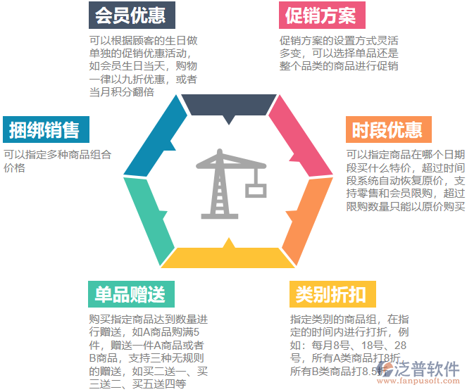 可以指定多種商品組合價格。例如:A、B、C商品分別為5元、6元、8元。如果單獨購買一共需要,19元,將這三件商品組合成一個促銷套餐的話,只需要15元,該促銷方式多應用如商場花籃、禮盒等銷售方式。