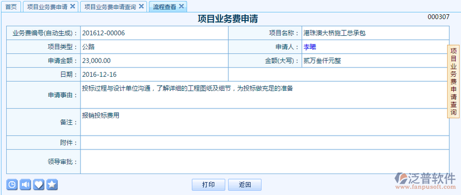 項(xiàng)目業(yè)務(wù)費(fèi)申請查詢