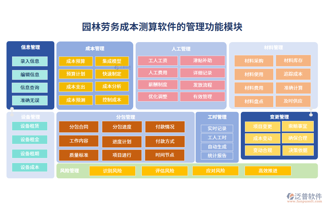 ♦泛普園林勞務(wù)成本測(cè)算軟件中勞務(wù)管理、成本管理、測(cè)算管理、合同管理的介紹