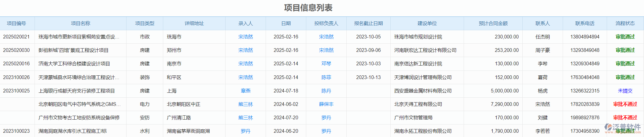 填寫項(xiàng)目名稱、項(xiàng)目簡介、項(xiàng)目地址、錄入人、錄入日期、項(xiàng)目性質(zhì)、項(xiàng)目類型、投標(biāo)負(fù)責(zé)人、預(yù)計(jì)投標(biāo)日期、預(yù)計(jì)投標(biāo)費(fèi)、預(yù)計(jì)合同金額、建設(shè)單位、聯(lián)系人、聯(lián)系電話、設(shè)計(jì)單位、監(jiān)理單位、備注等