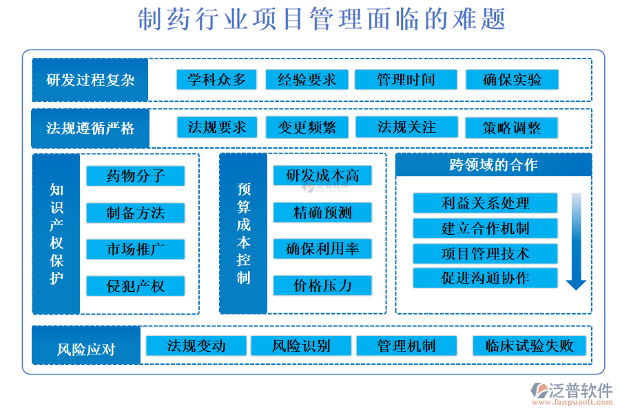1. 研發(fā)過程復雜:制藥行業(yè)的研發(fā)涉及化學、生物學、藥理學等多個學科,以及臨床前和臨床試驗等多個階段。這要求項目管理團隊具備跨學科的知識和經(jīng)驗,以理解每個階段的具體需求和挑戰(zhàn)。臨床試驗是研發(fā)過程中最耗時和最昂貴的部分,項目管理需要精確地預(yù)測和管理時間、資源,同時確保試驗的合規(guī)性和數(shù)據(jù)的質(zhì)量。